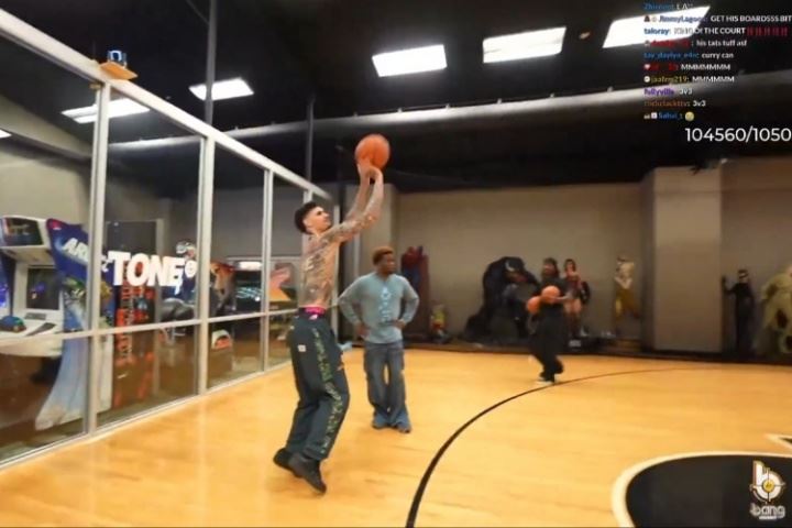 😳随随便便三分10中9!三球在网红主播Kai的球馆内大秀准度