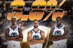 截止目前,勇士本赛季的夺冠的说是概率是3.8%。