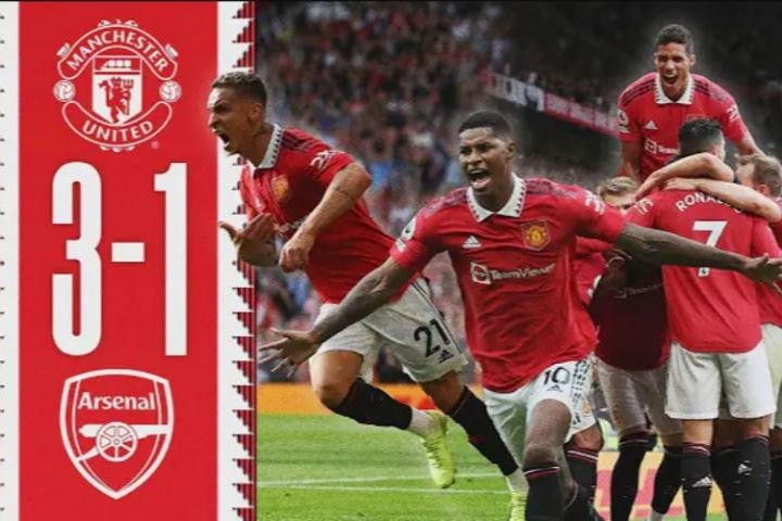 首秀即破门!22年英超,安东尼左脚兜射破僵,曼联3-1力克阿森纳